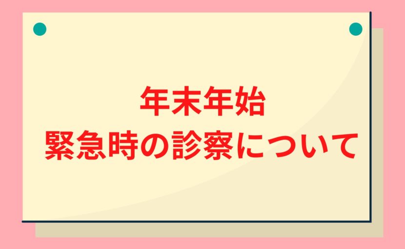 年末年始の診察につきまして、改めてのご連絡となります。